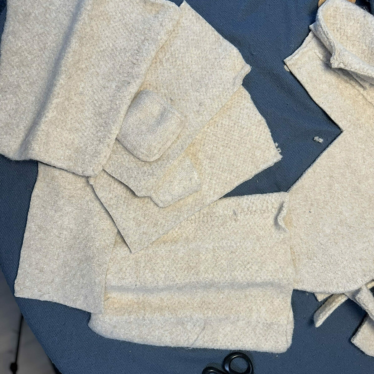 Försök att inte fokusera för mycket på vad plagget en gång var, behandla det i stället som ett tyg. Beroende på hur stor tröjan är efter att den tovats kan du skapa olika produkter. Ett större tygstycke kan till exempel sys om till en väska. Ärmar från en tröja kan med några klipp bli handledsvärmare och plagg i mindre