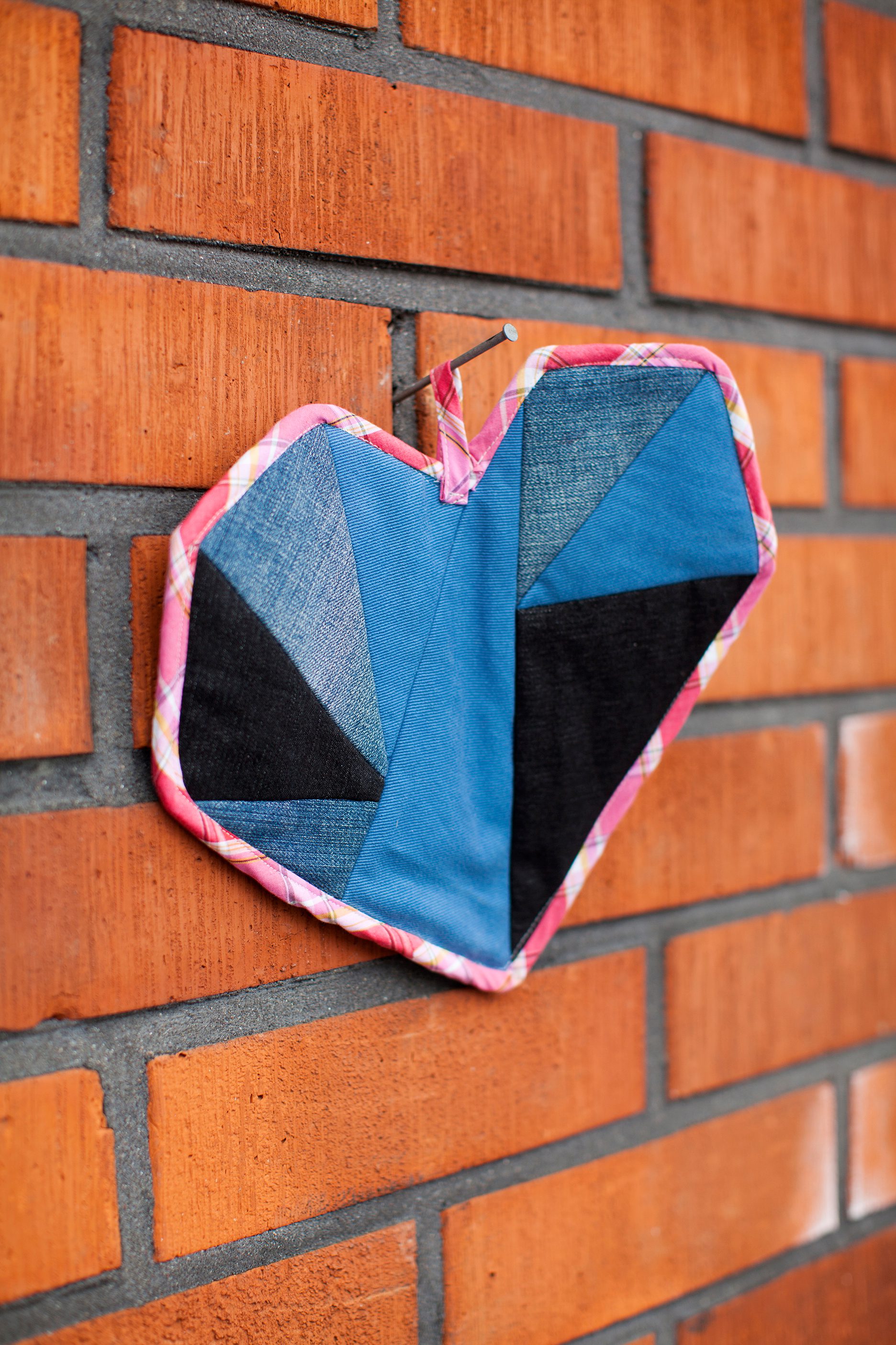 Gamla jeans förvandlas med lite sykunskap till en grillhandske/pannlapp i lappteknik.