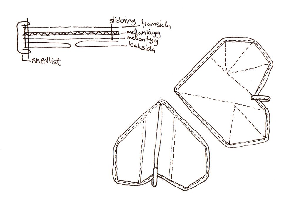- Placera delarna med lappteknikhjärtat underst, sedan mellanlägget och sist det hela hjärtat, sy stickningar i sömmen mellan delarna på lappteknikshjärtat.