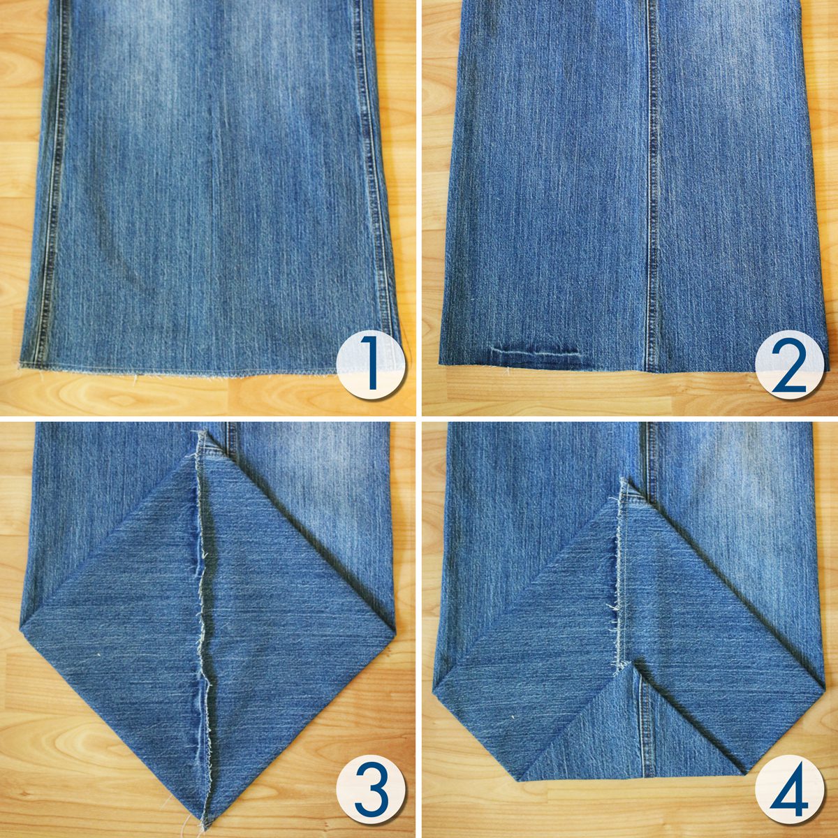 1. Klipp av benen på ett par jeans nedanför grensömmen. Klipp lös benens fållar.