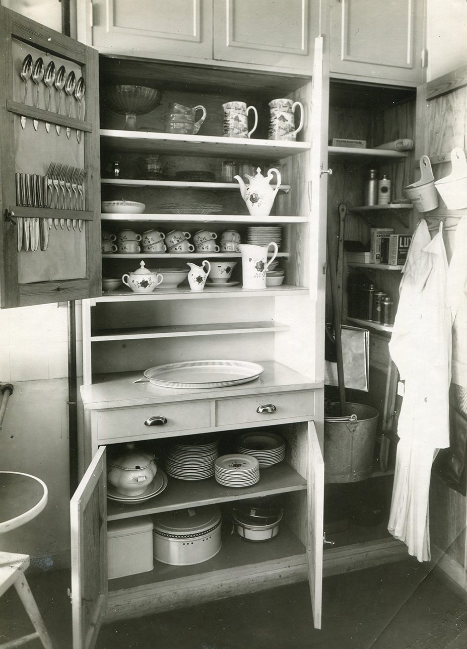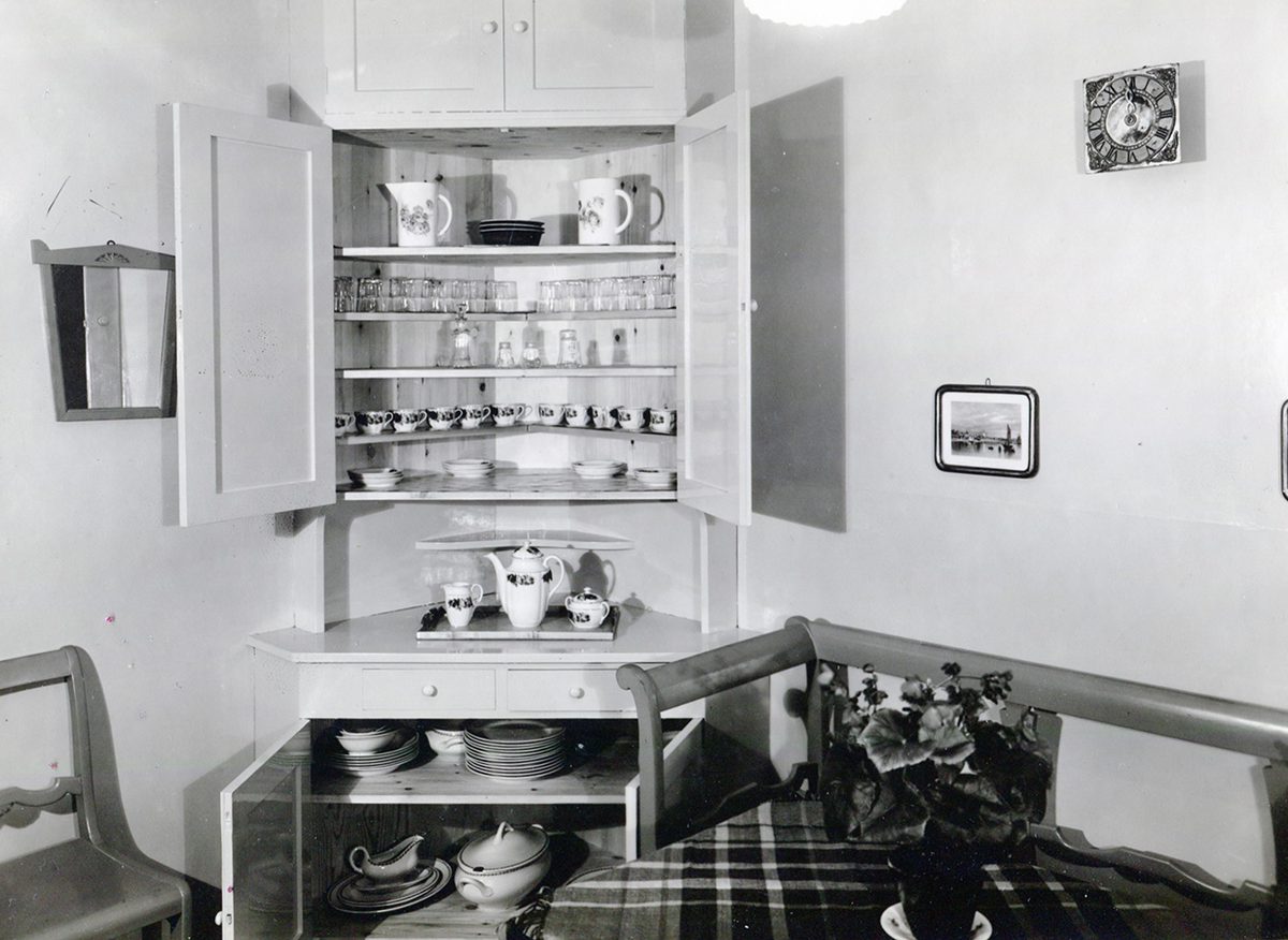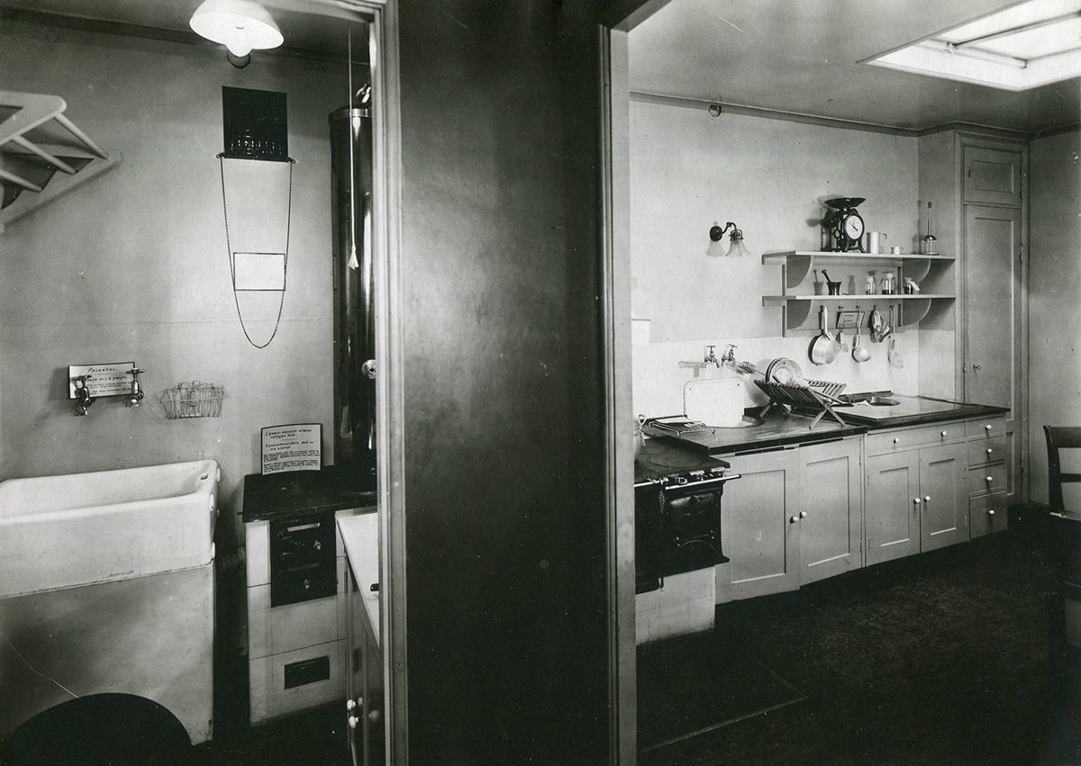 Flera bilder finns bevarade och visar ett kök med vedspis och ett kök med gasspis – trivsamt och välordnat med var sak på sin plats, kaffepannan på spisen, prydliga kärlskåp, rutiga gardiner och borddukar.