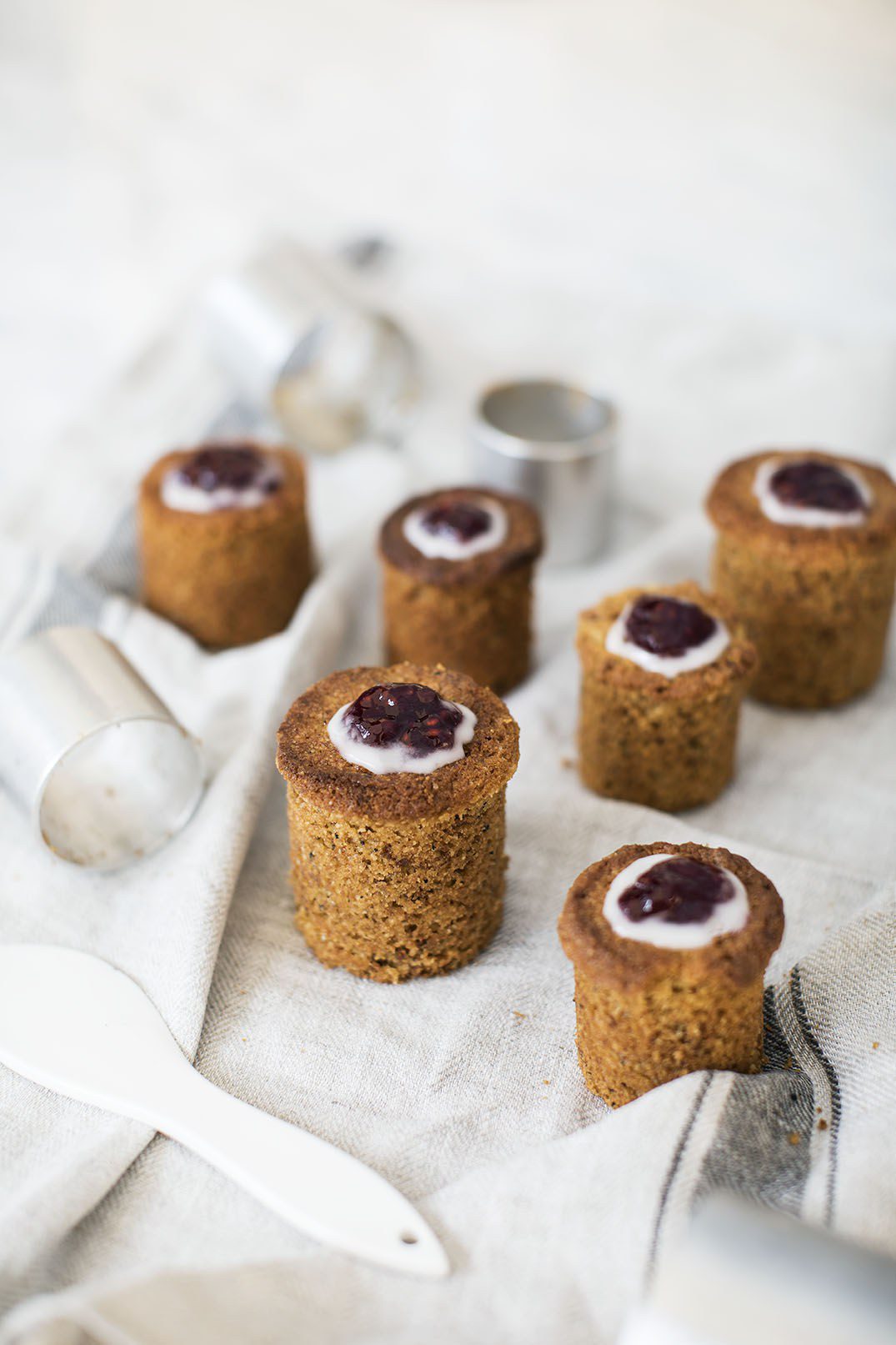 Först: Den klassiska Runebergstårtan med en saftig och kryddig smak av mandel, pepparkaka och kardemumma. Bakas i höga formar eller i vanliga muffinsformar.