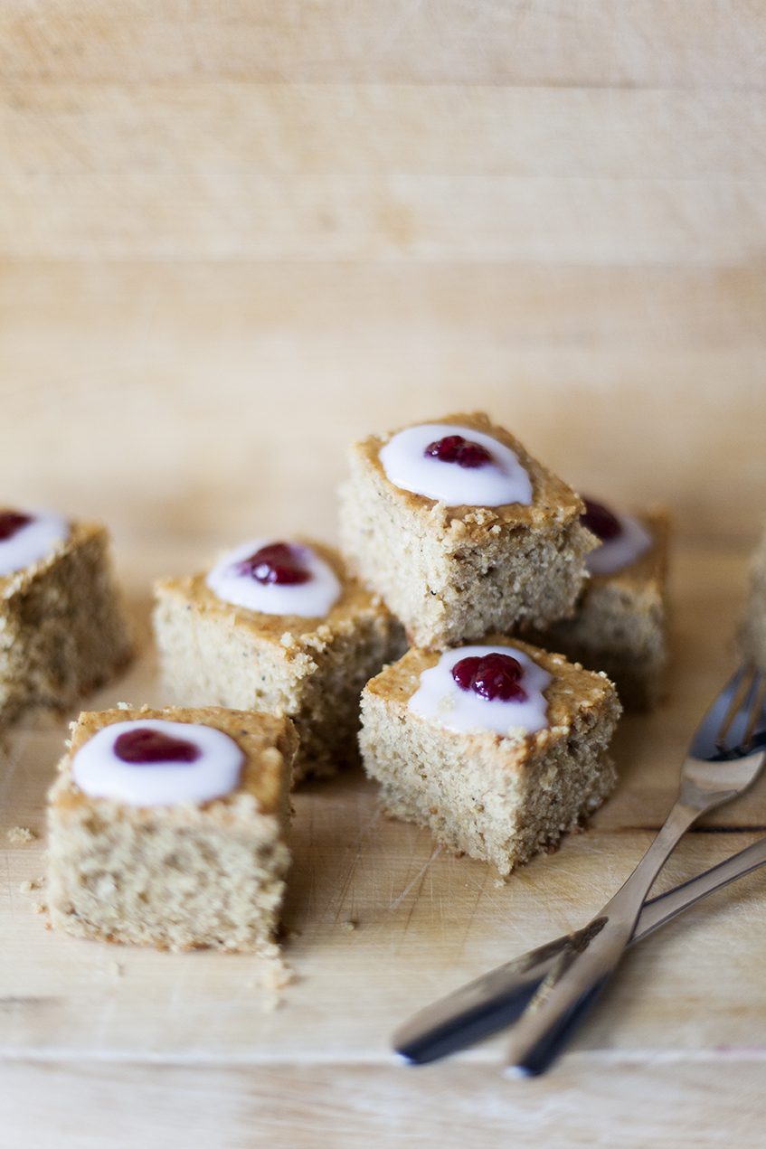 Njut av en smakrik, glutenfri variant av den klassiska Runebergstårtan! Den kryddiga kakan med mandel och glutenfri pepparkaka toppas med hallonsylt och glasyr för den perfekta balansen mellan sötma och syrlighet.