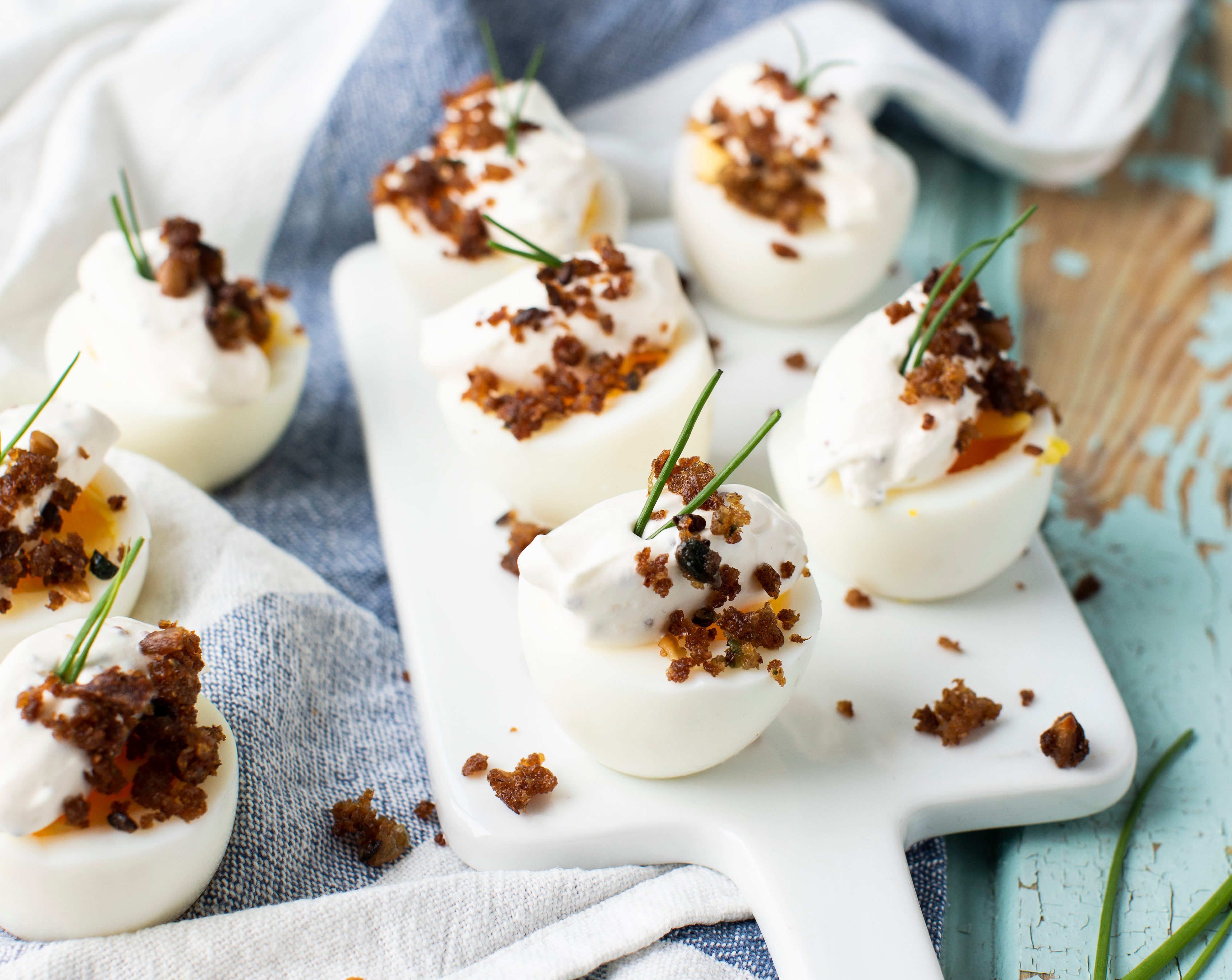 Ägg är starkt förknippat med påsken och är ett genomsyrande tema även i påskveckomenyn. Ägg är ett proteinrikt livsmedel som innehåller massor av vitaminer och mineraler, såsom A, D, B2, B12, folat och selen. Till dem vars diet av någon anledning inte inkluderar ägg erbjuder denna veckomeny även äggfria alternativ till recept som annars är starkt förknippade med ägg, till exempel maräng och majonnäs. Testa den veganska pavlovan eller nässelcremen som baseras på en äggfri majonnäs.