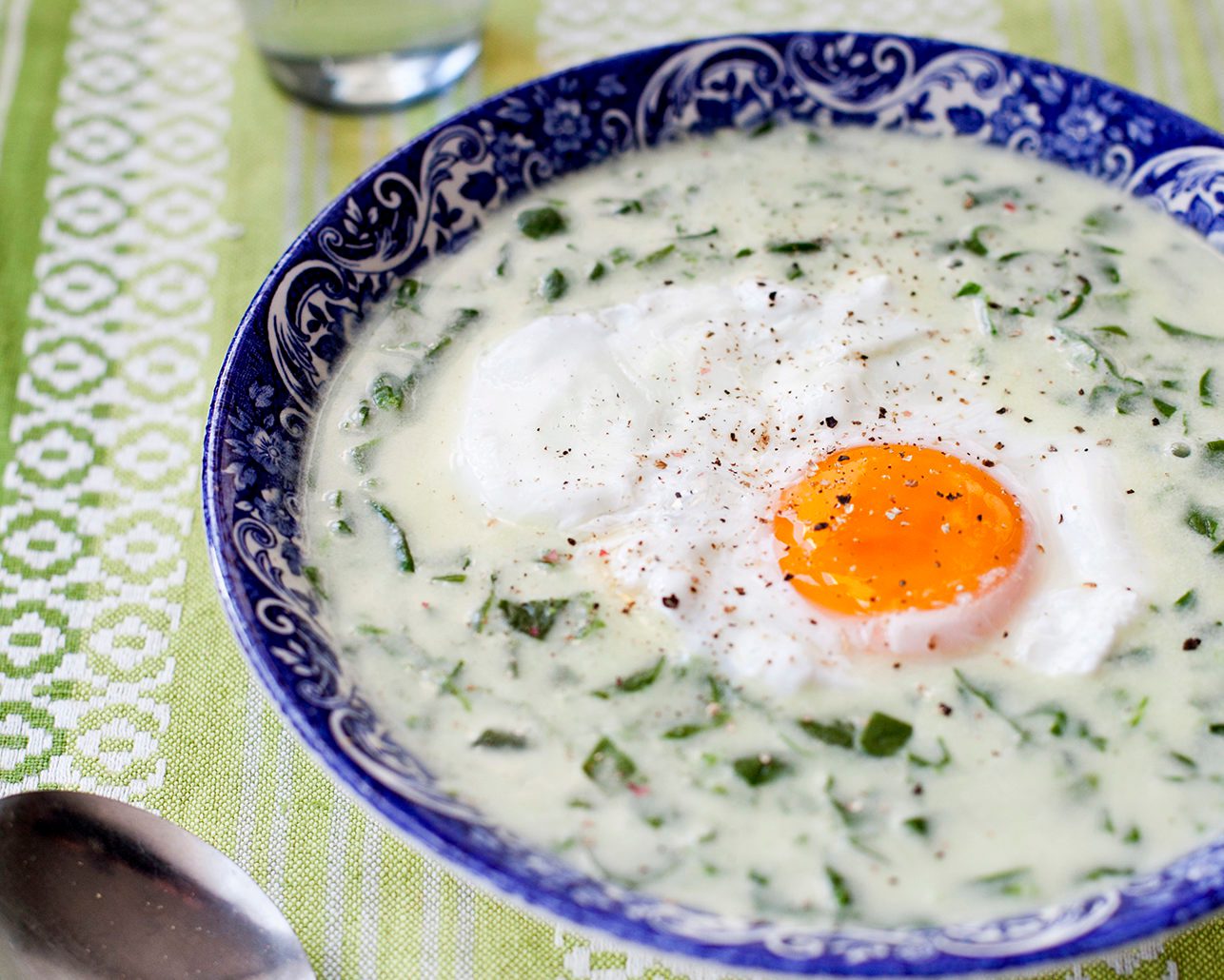 - Middag: spenatsoppa (byt gärna ut spenaten mot nässlor eller grönkål) och baka en snabblimpa till. Gör dubbelsats. Ett vanligt kokt ägg per portion passar precis lika bra som ett förlorat ägg som anges i receptet.