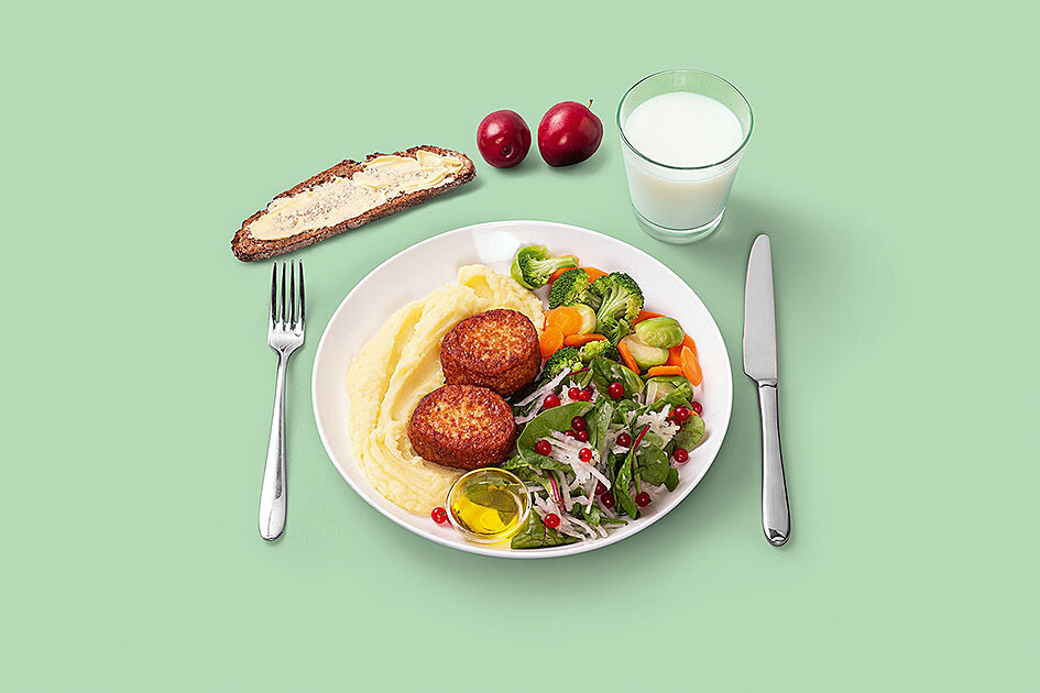 Tallriksmodellen visar hur vi får i oss alla nödvändiga näringsämnen, däribland fetter. Foto: Livsmedelsverket